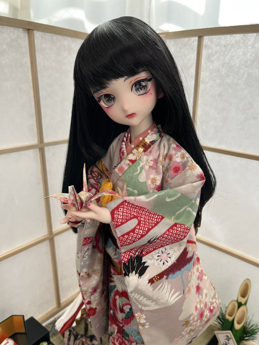あけましておめでとうございます🌅 本年もどうぞよろしくお願いします🙇♂️ ヘッド、お着物、ウィッグ、アイのフルセットで1/5(木)までヤフオク出品中です👘 →【page.auctions.yahoo.co.jp/jp/auction/q10…】 #KeiKouDoll #MDDはいいぞ