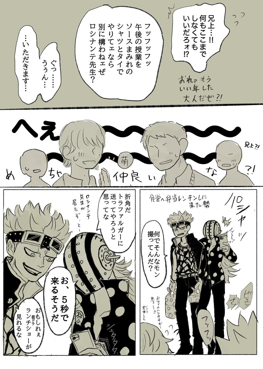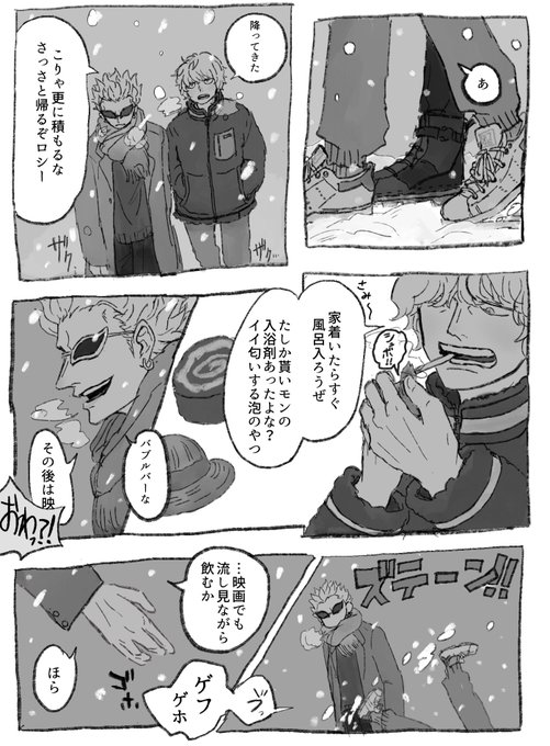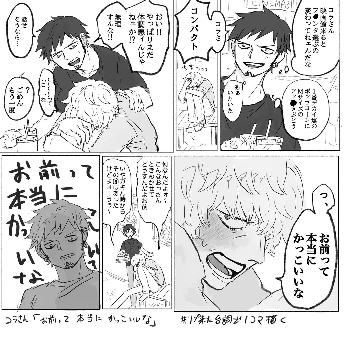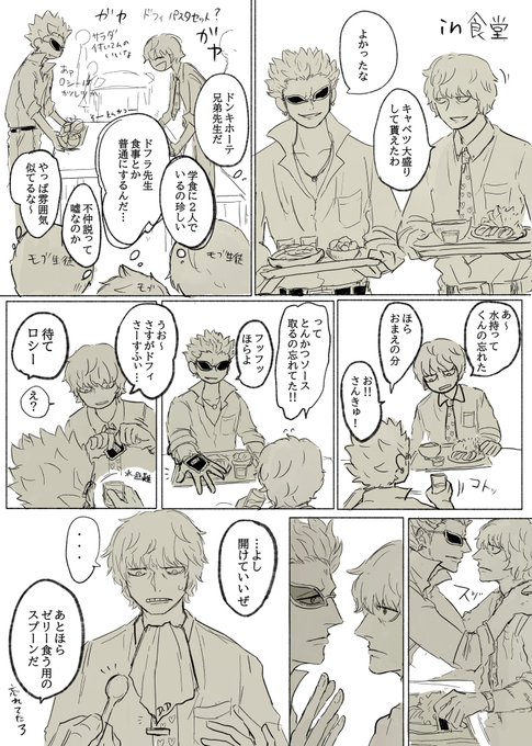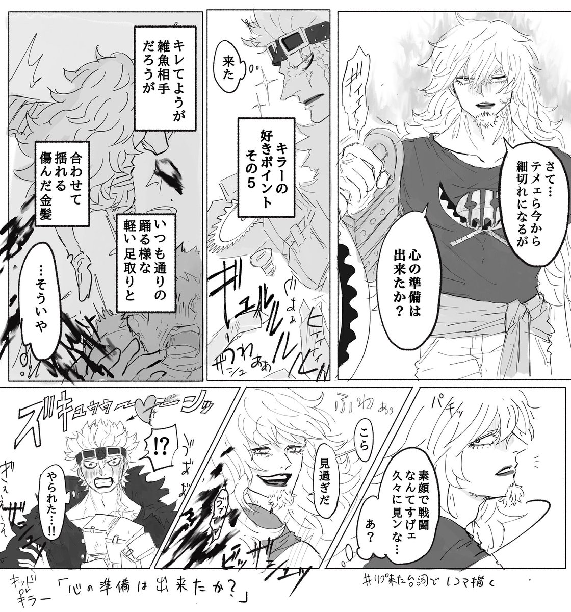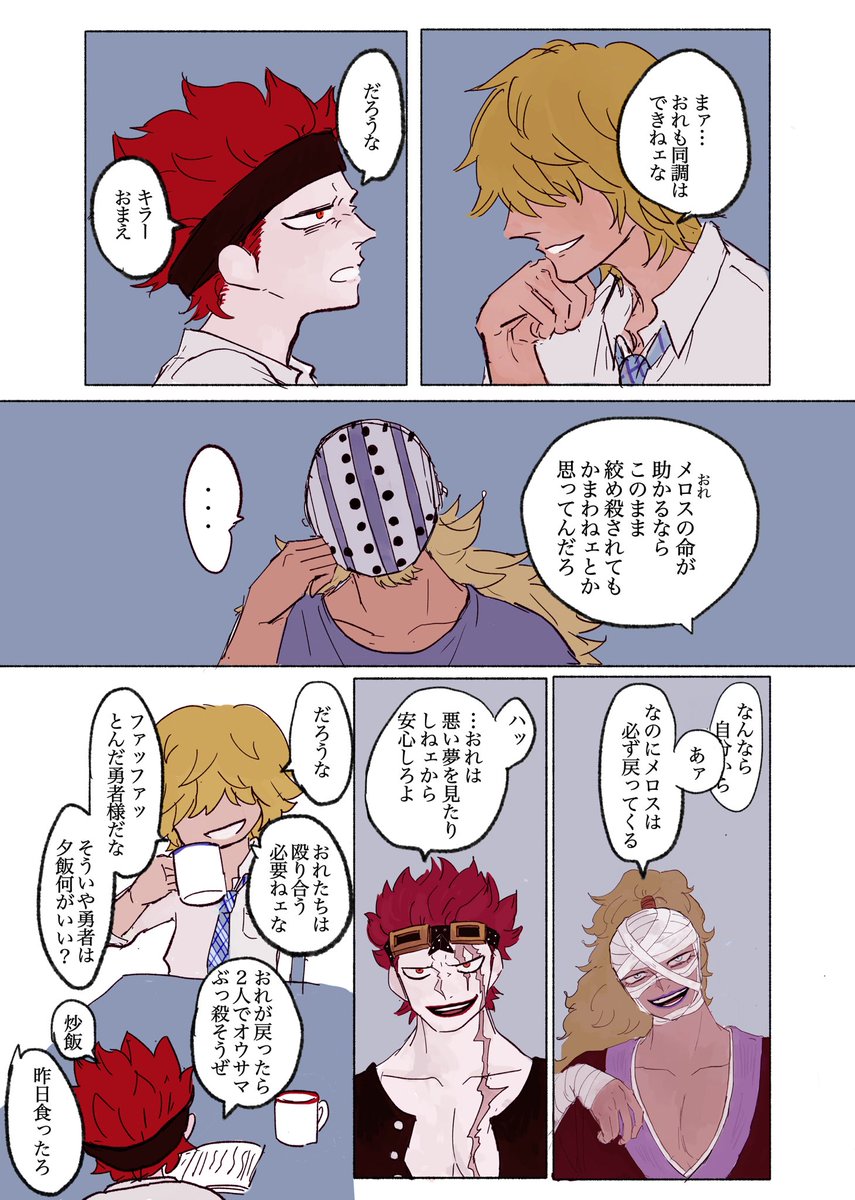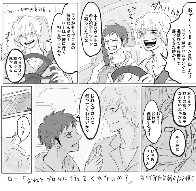 #リプ来た台詞で一コマ描く 1:現パロ🐯❤️🔥 🐯「おれとプロムに行ってくれないか?」 2:現パロ🐯❤️🔥 ❤️🔥「お前って本当にかっこいいな」 3:再会if🐯❤️🔥 ❤️🔥「悪ィけど、お前らのキャプテンをおれに奪わせてくれ」 4:🌷🌐 🌐「心の準備は出来たか?」 その② 反応ありがとうございました!!