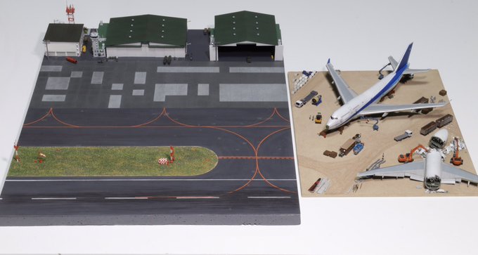 ジタク・オヘヤ空港完成! 計画された2つのエリアが完成しました。これにより4機の展示・撮影が可能になりました。国内線ターミナルだったり国際線ターミナルだったり展示方法はたくさん楽しめます。時代的にあり得ない並びも楽しめるのがジタク・オヘヤ空港の醍醐味ですね。 #ジタク・オヘヤ空港