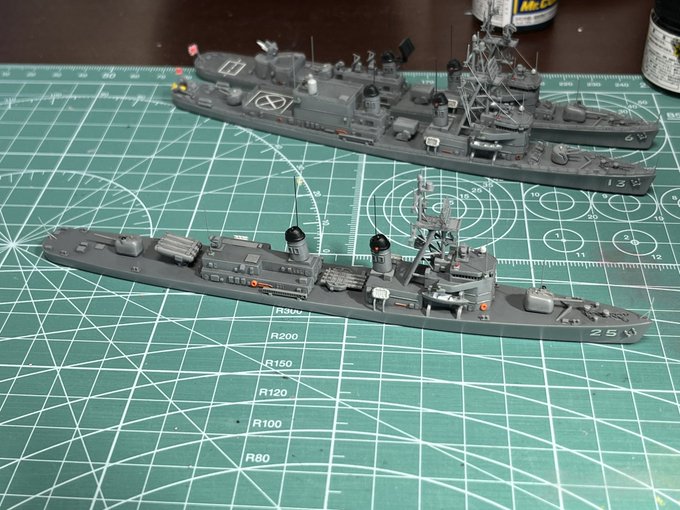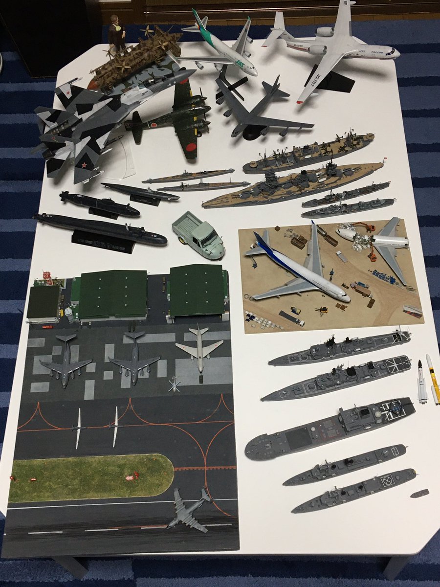各部門ごとに写真を撮りました。 まず第二次大戦艦部門。 戦艦「扶桑」 駆逐艦「睦月」 駆逐艦「オンスロー」 潜水艦「伊-16」「伊-58」 潜水艦「ハーダー」 特設水上機母艦「神川丸」 #今年作った模型晒そうぜ