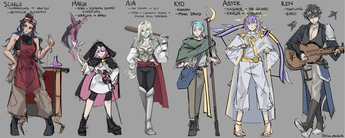 ILUNA reimagined as D&D party! (loosely based on lore) Aia always talks about her D20 so I hope that a campaign or one shot becomes a reality one day!!! 🤞 (sketch/WIP) #ILUNA #DungeonsandDragons #DnD #ScarleArt #MariART #AiaAmARTe #DrawKyo #Arcadiart #RenZottoArt