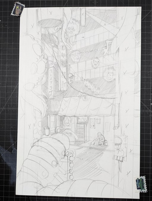 Wip of my Mob Psycho 100 fan art. This is fun and relaxing, trying to shove as much clutter into it! I have Shigeo, Reagan, and Dimple in it! #mobpsycho100