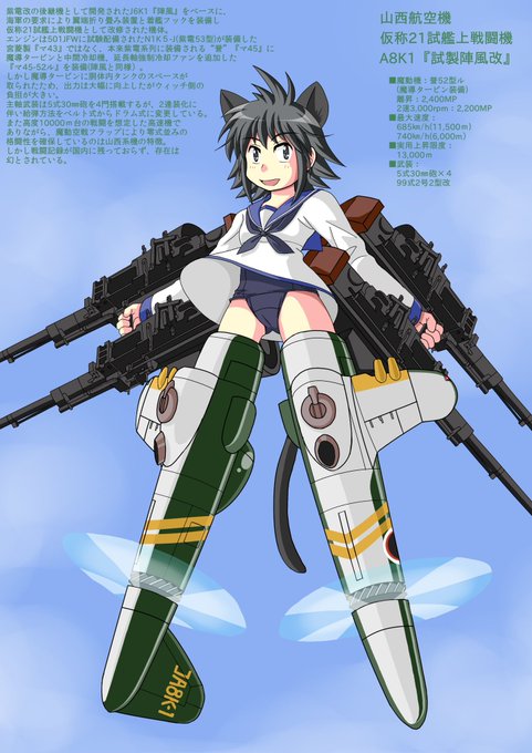 祖父がこれの設計陣の一人だったもので描いた絵 #艦これ #紫電改 #過去絵