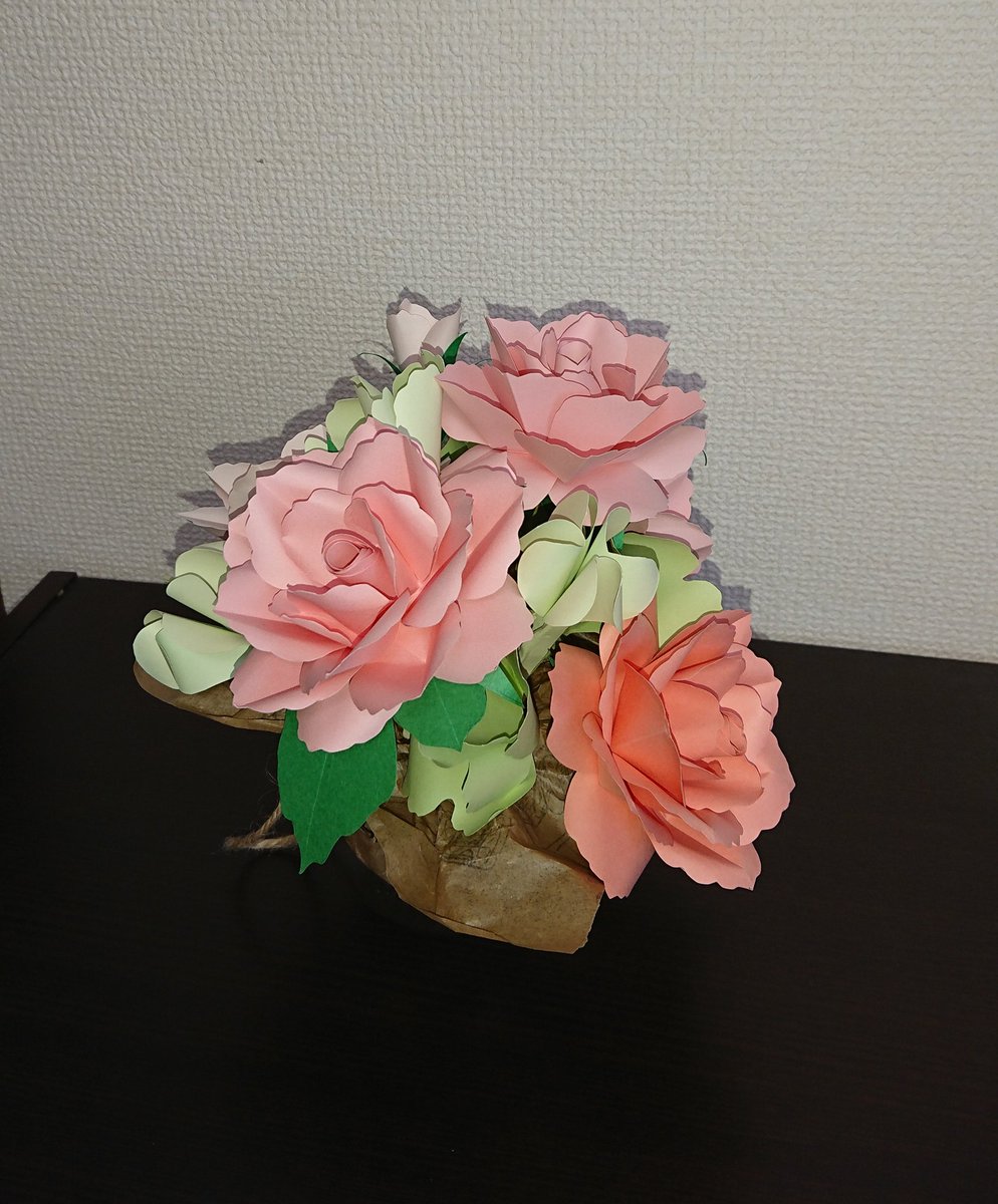 #ペーパークラフト のバラ🌹 セリアのガラス瓶に入れて飾りました🎵