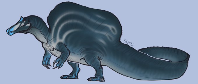my brain always defaults to spinosaurus whenever i want to draw a dinosaur so here, have this spino with beefy arms (for hugging, obviously) #paleoart #spinosaurus