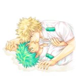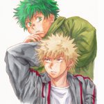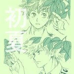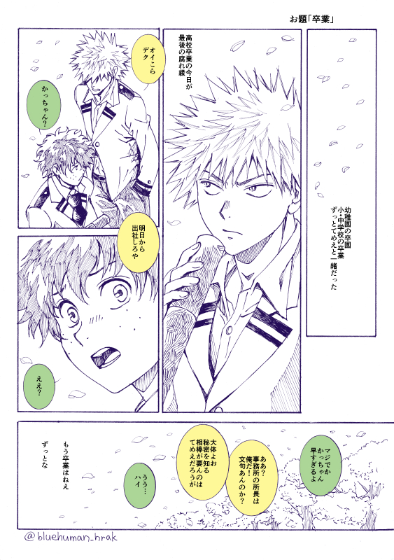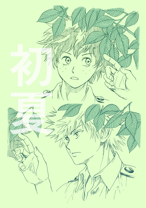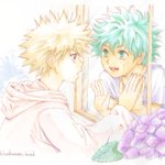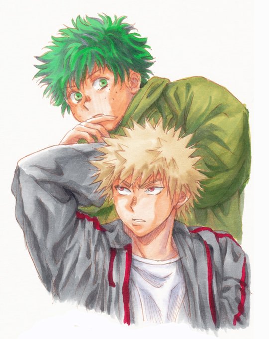お題「紫陽花」遅刻ですが描いたので。色も塗りたかったので。雨模様らしく水彩にしたかったけど、結局紫陽花だけが水彩。練習せねば。小学生の頃の勝デクのつもりです。 #勝デク版深夜のお絵描き一本勝負