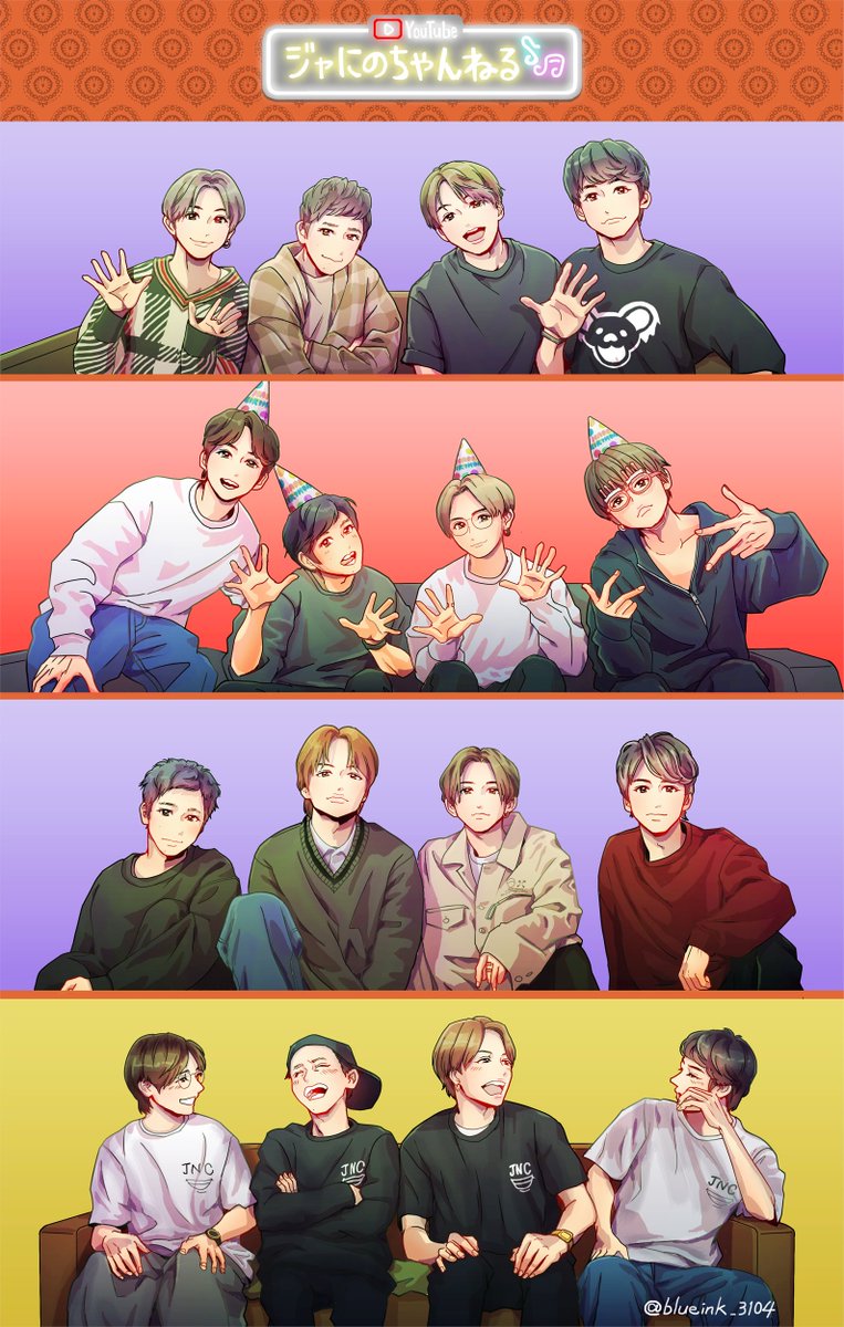 ジャにのちゃんねる2周年おめでとうございます🥳 (過去絵でごめんなさい) これからも4人らしく無理なくゆる~く更新していってくれると嬉しいです!