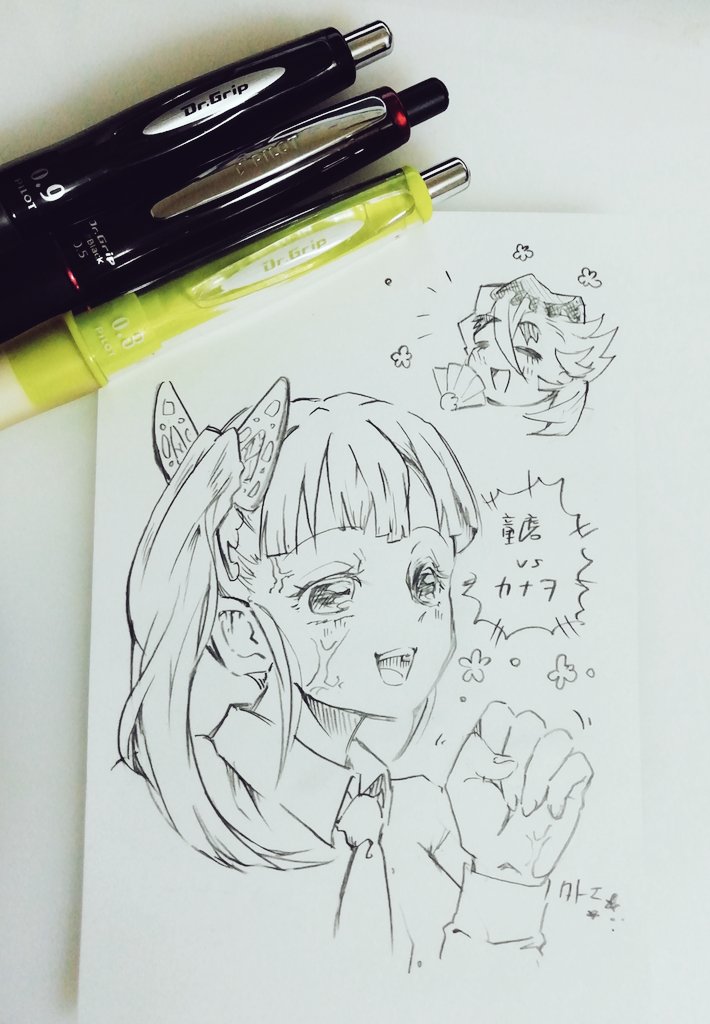 童磨vsカナヲちゃん🧨なシャーペン画。