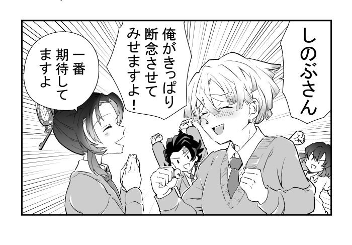 28 140 【キメツ学園!!ストーカー対策秘話②】 胡蝶家に炭治郎と善逸が遊びに来ていたところ、童磨襲来。#童しの 22/09/04 17:33
