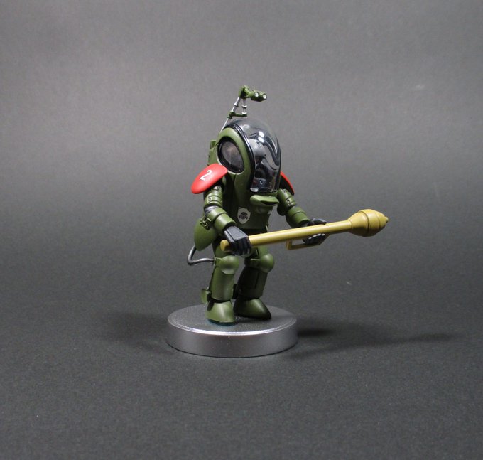 #今月完成したプラモ晒そうぜ ガチャーネンのハインリッヒ 500円ガチャのザクヘッド(プラモではないですが) どちらも筆塗り 片方はキレイに、もう片方は荒々しく塗料の透け感を出すようにして、正反対の方向性で塗ってみました😃