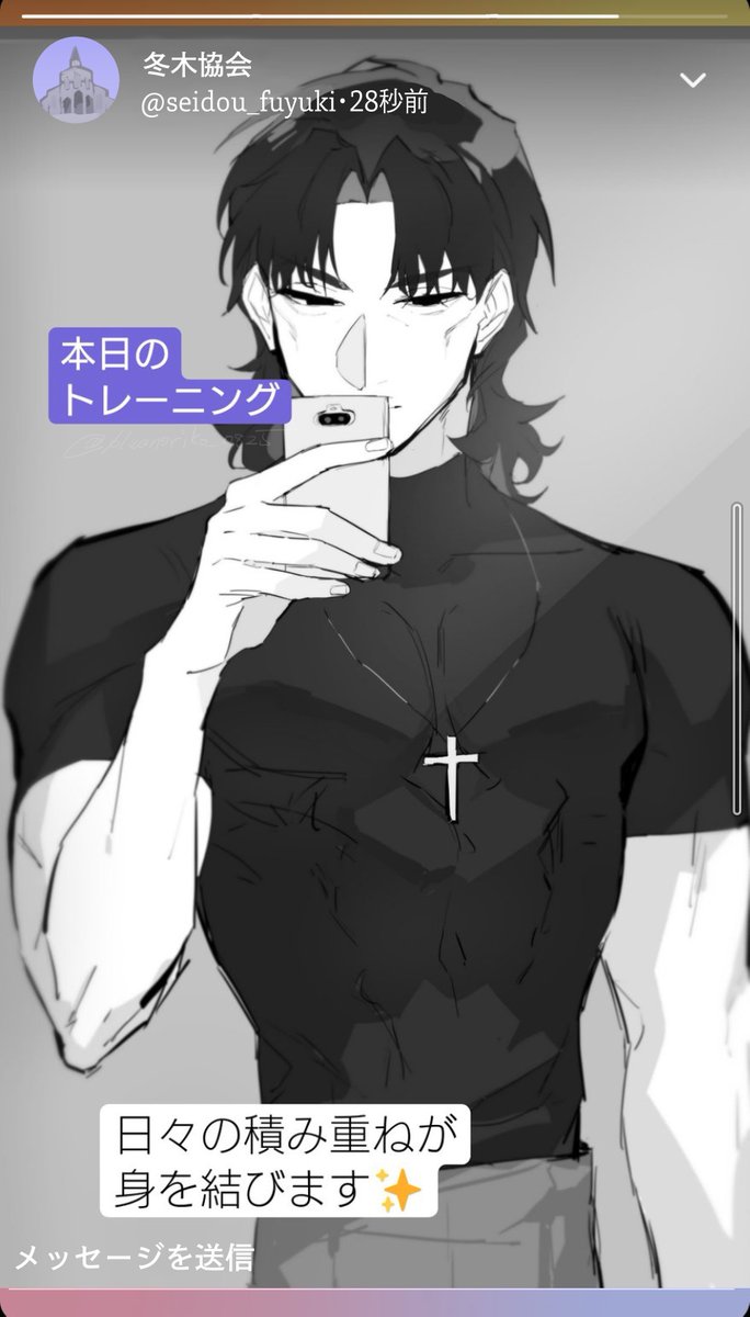 87 313 不定期に協会の神父さんがフリートで筋トレ後の様子を投稿している 20/11/13 19:20