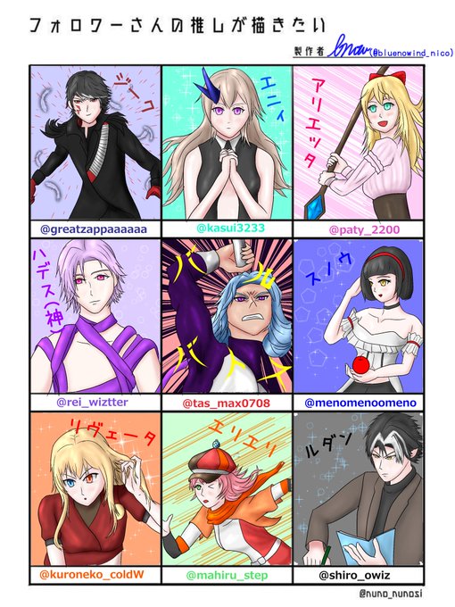 #フォロワーさんの推しが描きたい 大ッ変、お待たせしました! 募集日から、なんと3ヶ月の月日を経て完成しましたッ! てか、 真 ん 中 に 全 部 持 っ て か れ た w ホントは、文章の感じでアニメさせたかったんですけど、これ以上待たせる訳にも。てわけで一旦断念(誰か代わりに…← twitter.com/bluenowind_n…