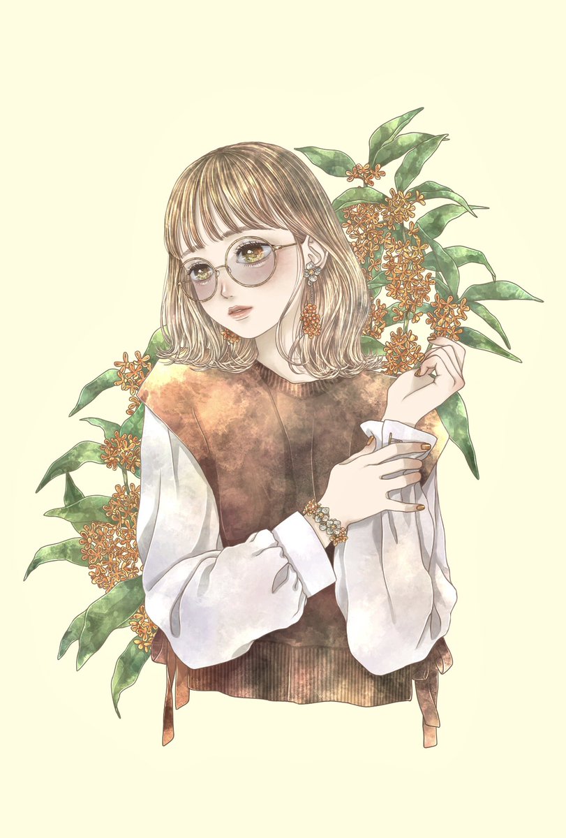 繊細で美しいアクセサリーを作られている1218さん(@1218_2017 )とのコラボで、金木犀のイヤリングとブレスレットを描かせていただきました✨実物がとっても可愛らしいです…🥰 アクセサリーと同系色で秋を感じさせる落ち着いた色味に仕上げました🍁 とても貴重な機会をありがとうございました🙏💖 twitter.com/1218_2017/stat…