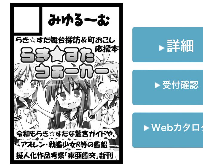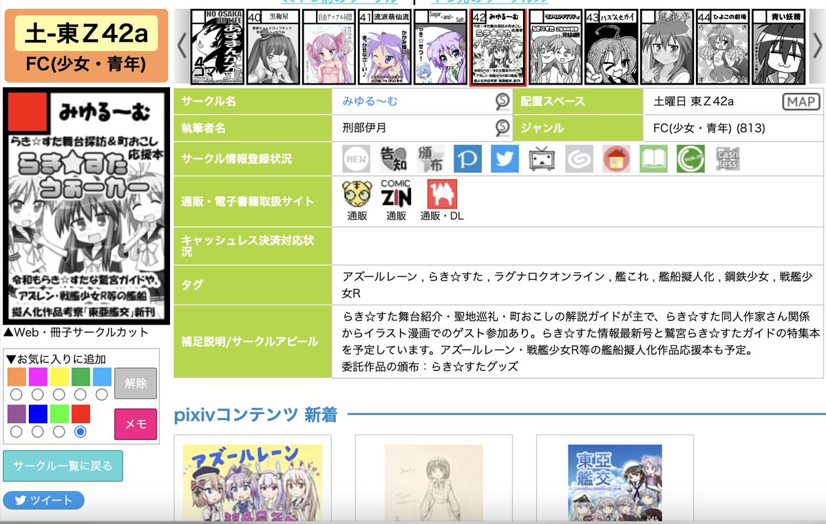 ◎あなたのサークル「みゆる~む」は、土曜日 東地区“Z”ブロック-42a に配置されました。 らき☆すた町おこし15周年「らき☆すたうぉーかー2022夏」C100も発行予定です!>w< よろしく☆ 艦船擬人化作品応援本「東亜艦交」も2022新刊予定 #C100WebCatalog #C100 #らきすた