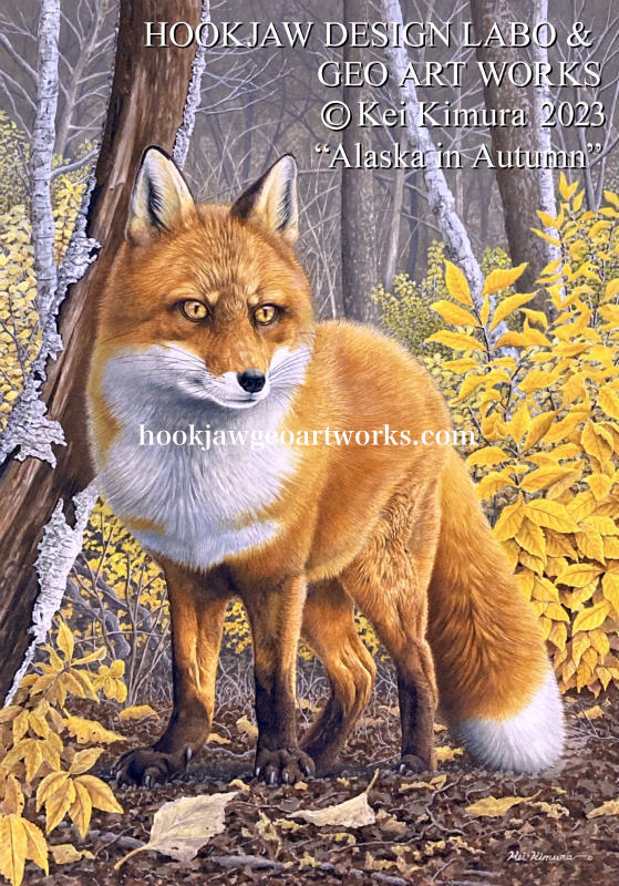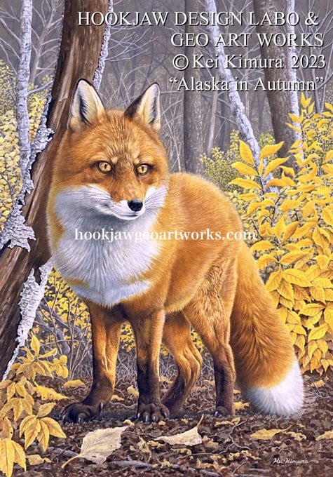 #今月描いた絵を晒そう 第27回ジオアートワークス企画公募展 #もふもふしっぽのきつね達展5 くまのみギャラリー4/15-17 大阪市北区豊崎3-20-9三栄ビル2F hookjawgeoartworks.jimdosite.com/geoartworksfox… 新作展示販売 アラスカ野生動物画家 きむらけい Alaska in Autumn 秋のアラスカの森に佇む 美しいレッドフォックス