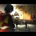 #みか宗 是昨天中元节的咪宗怪谈企划图~ 「今宵别生死,魂兮归来何可见,十六夜秋霜」 昼短露凉,草木零落,少年同每年一样,自远方回到这里。路途遥遥,他从未失约。