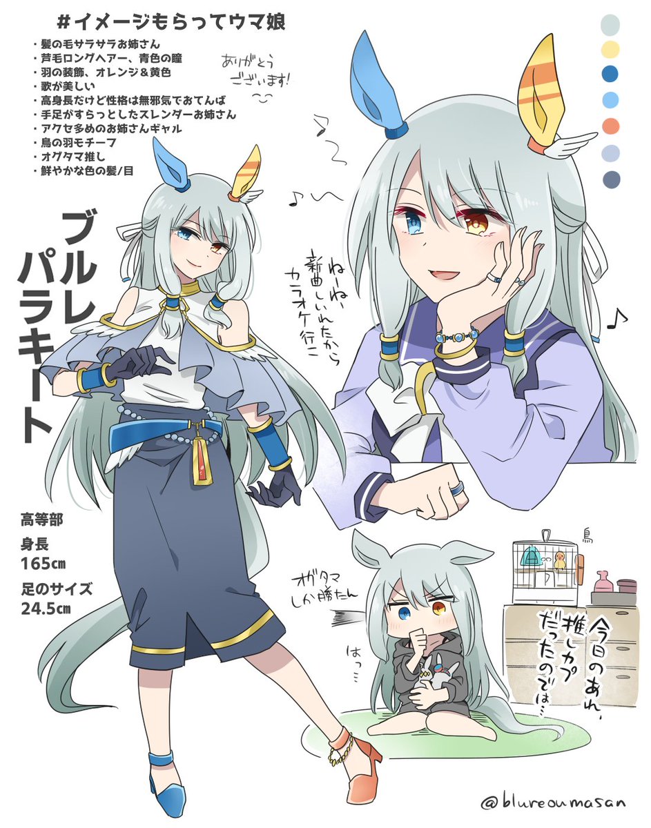 できた!ブルレパラキートちゃんです #フォロワーさんからイメージもらって自分をウマ娘化する