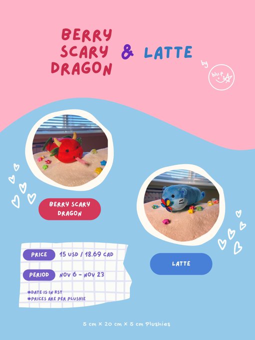 [Now open!] Berry Scary Dragon & Latte Plushies now available for preorder :D Time period: Nov 6 - Nov 23 Form link: gomdrop.com/grouporders/pu… [#ACE | #에이스 | #choicecreations | #acefanart | @official_ACE7]