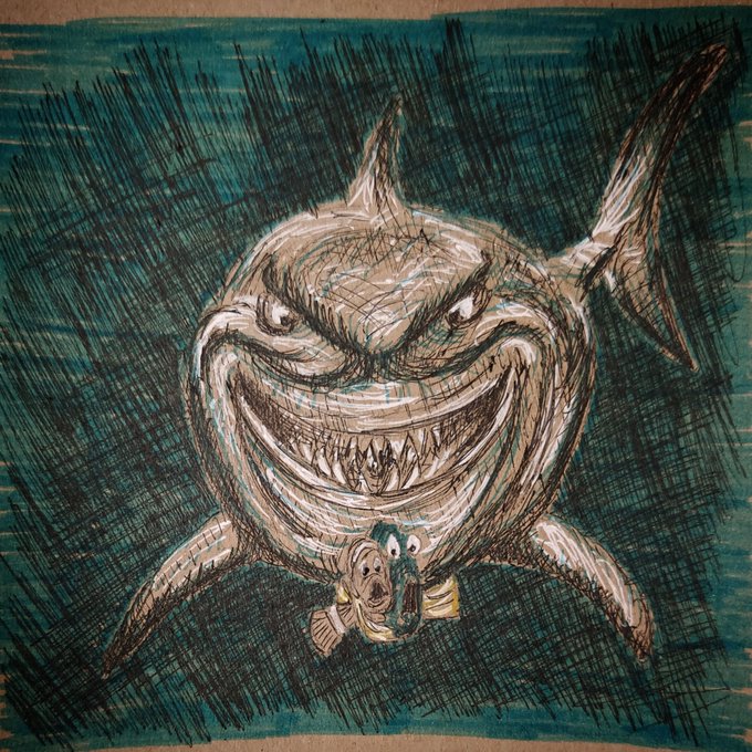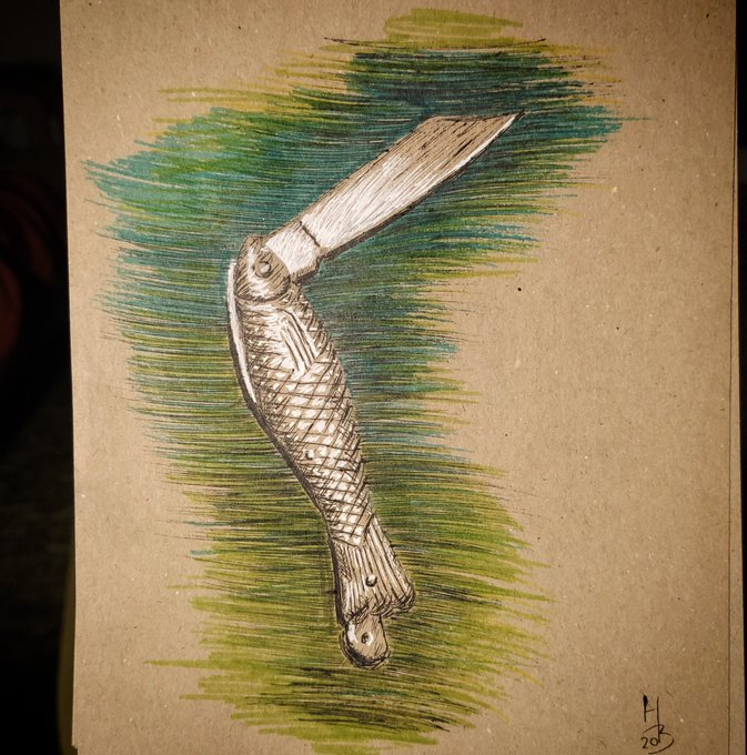 Nejlepší část podzimu začíná. Vítej Inktobere 😊 Dnes rozjezd a prvni téma #fish. Ryba, rybička. Je čerstvá? Není čerstvá! No i tahle varianta tu byla, ale nakonec česká klasika od @MikovCZ. Nejoblíbenější nůž pro děti a noční můra táborových vedoucích 😂 #inktober #inktober2020