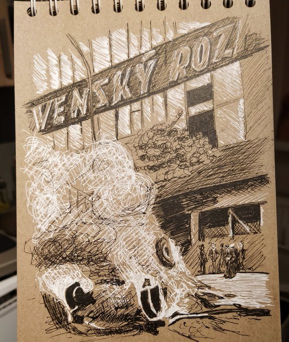Dneska trošku na vážnější notu. Vzhledem k tématu #radio, což může byt i rozhlas... Československý rozhlas srpen 1968. Jediná fotka, kterou jsem našla. #inktober2020 #inktober #rozhlas #ceskoslovenskyrozhlas #srpen1968 #august1968 #okupace
