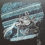 Den pátý, obrázek třetí, sunu se vpřed, ale pomalu. Ovšem i to má své kouzlo. Dnes doslova. Tema #bat ... netopýr. Theophil Vigo #inktober2022