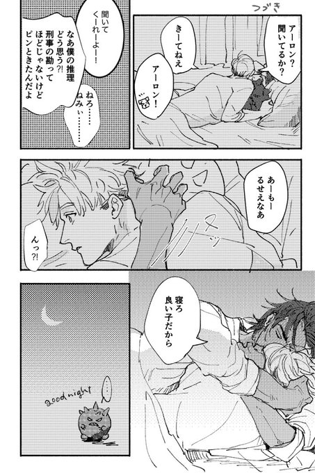 「でだ、僕はやっぱり怪しいのは途中で退室したエリック氏だと考えてるんだけど、君はどう思う?あーろん?なあ、まだ寝るなってば、聞いてくれよ」 ぐおーーーー