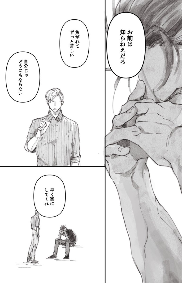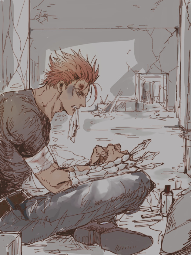 37 128 お題ありがとうございます! 「爪の手入れをしているアーロン」 気持ち10代くらい、まだ戦い慣れきってない頃は結構ケガしてたりとかね……………… 23/04/09 01:26