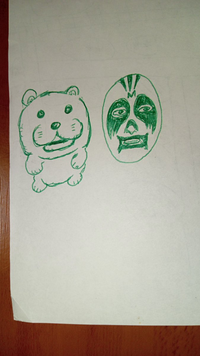 0 5 #イラスト メモ帳に落書きしてみた ミル・マスカラスをパクったマスクマンともふもふの熊? 22/06/22 18:45