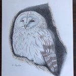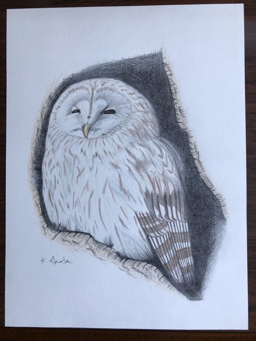 おはようございます☀ 今朝は晴れ✨ エゾフクロウの絵が完成しました💕 真駒内公園で眠そうにしていた姿をそのままに描きました🥰 フォロワーさんに貰っていただくので、これから海を渡ります🌈 今日も穏やかな一日になりますように🐿 #エゾフクロウ #色鉛筆画 #野鳥