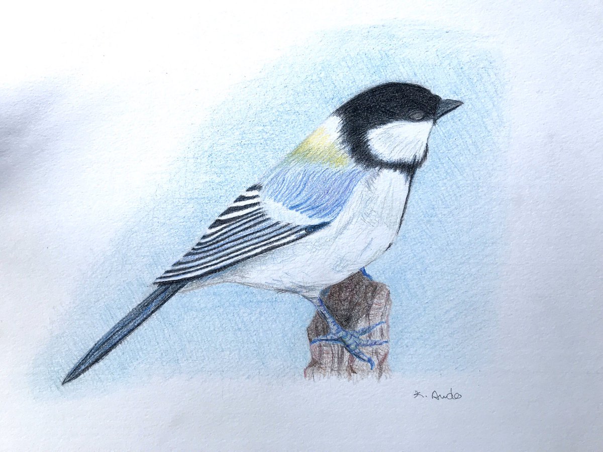 完成しました💕 シジュウカラ🥰 アイヌ語名パケクンネ✨ #色鉛筆画 #イラスト #野鳥