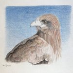 11 197 前に描いたトンビの絵💕 バックに青空入れました🌈 この絵をほのすけに見せると、逃げて行きます💦 怖く見えるようですw😆 #色鉛筆画 #イラスト #野鳥 21/08/21 12:21