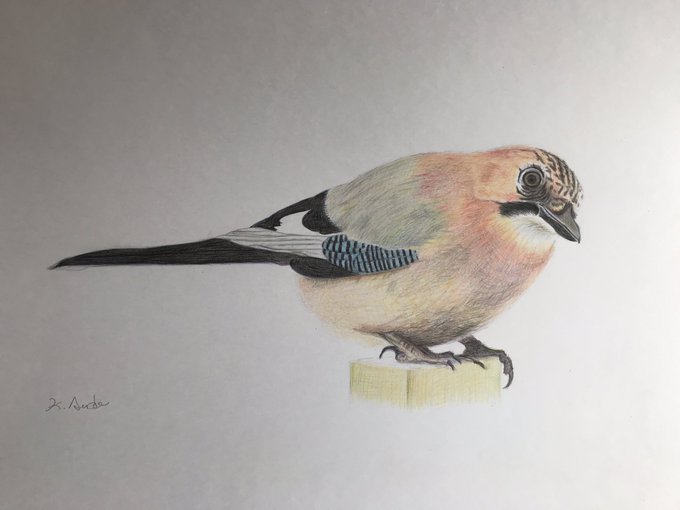 途中❣️ #色鉛筆画 #かけす #イラスト