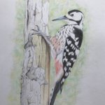 3 103 途中❣️ 姪の新築祝いに贈るつもりで描き始めましたが、何かちょっとイマイチです😆 まだいじります💦 #色鉛筆 #野鳥 #大アカゲラ 22/07/29 12:53