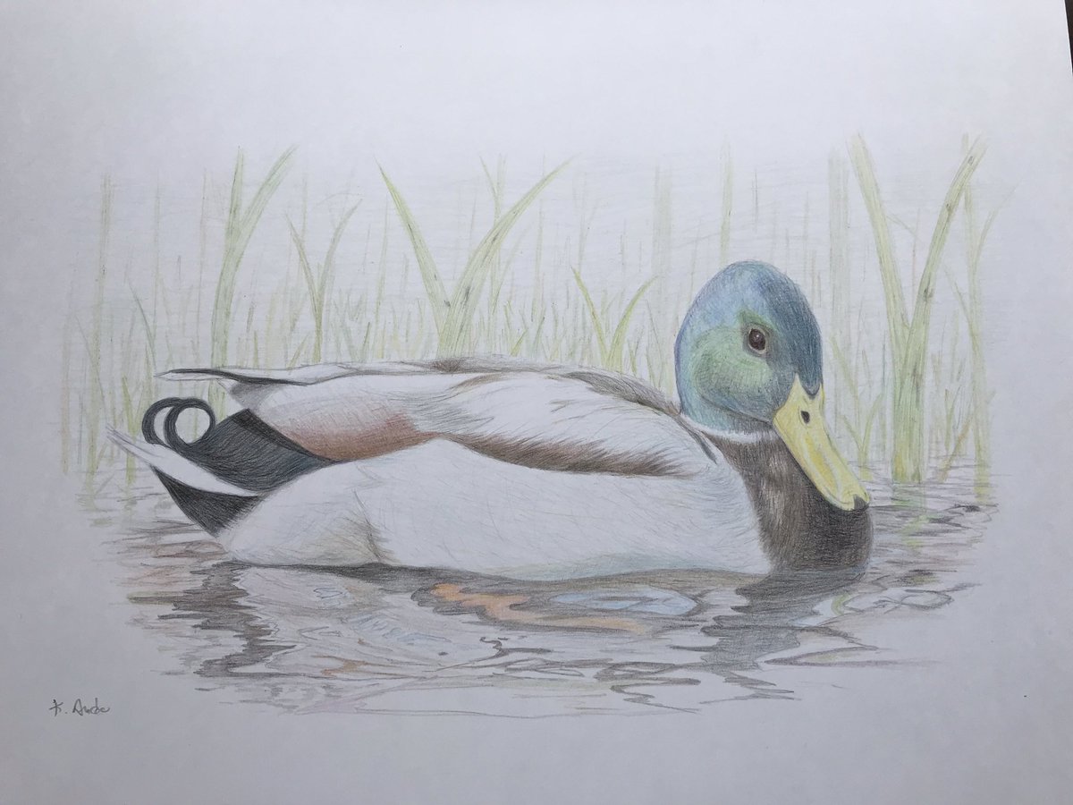 家の前の水路に来ていた、カカァ天下マガン夫婦の夫😆 アイヌ語名コペチャ💕 後でまた描き足すかもですが、一応完成にします🤔 #色鉛筆画 #野鳥 #マガン