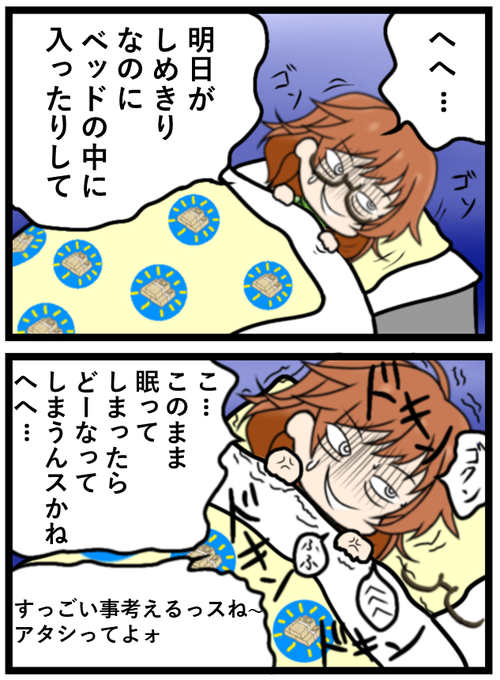 #今月描いた絵を晒そう 布団入って眼鏡外しちまったらおしめえよ