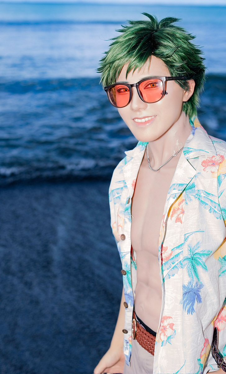 104 823 トレイクローバーが海連れてきてくれた風写真🌊 ⚠︎捏造衣装 コスプレ twst ♣️ cosplay トレイ・クローバー 23/08/07 17:36