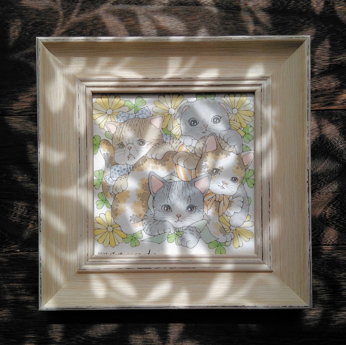 ジェイアール京都伊勢丹8階で開催中『#猫いっぱいギャラリー』本日より一週間、店頭におります。新作イラスト原画、お求めやすい複製原画のミニフレームもごじゃります。