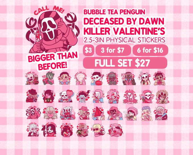 If you were curious about the sizing of the Vday dbd stickers, they are big! Even tho it was a "mistake" I'm taking it with stride the quality is 10x better than the older version color/quality wise #dbdfanart #dbd