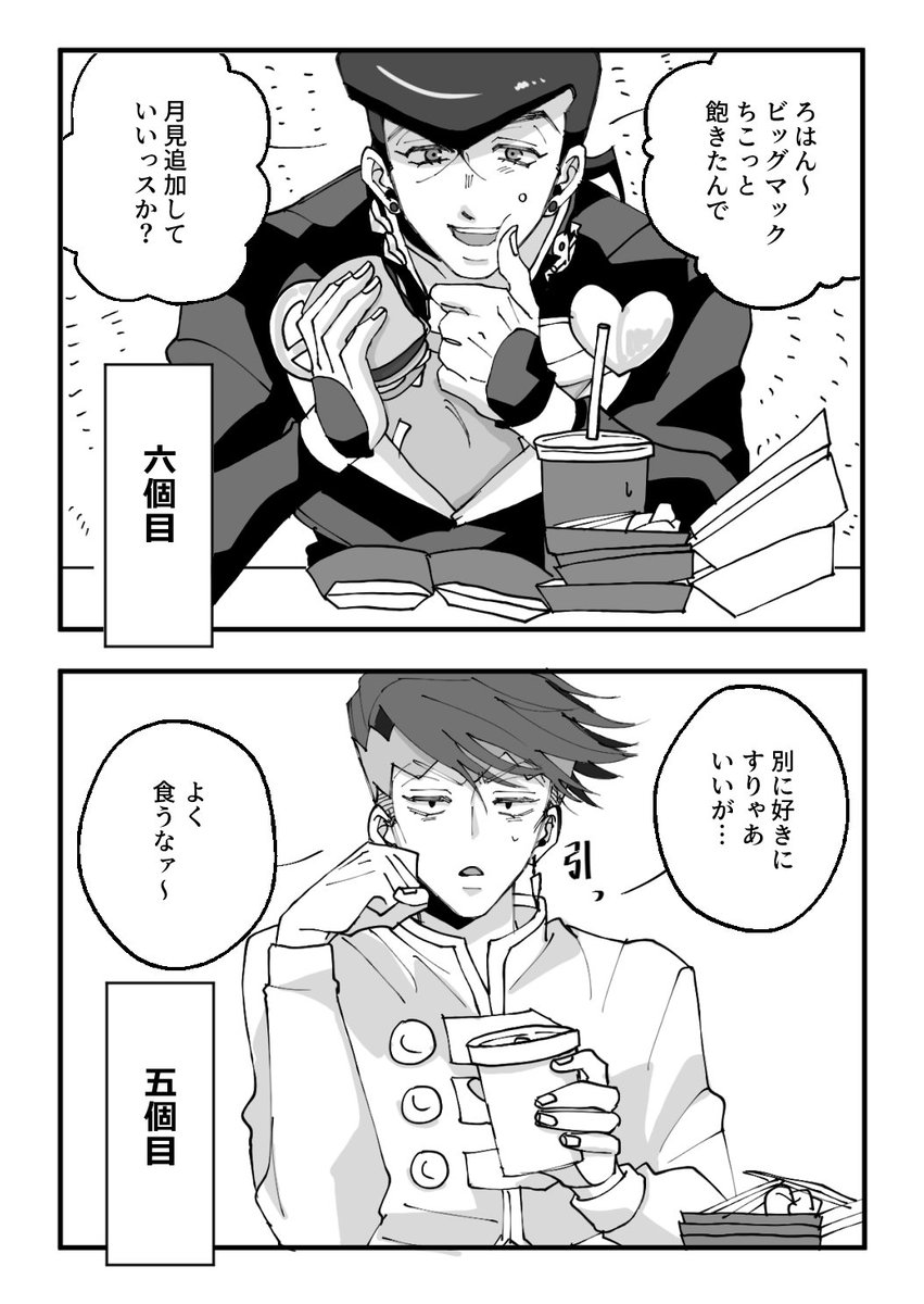 こないだの仗露イプ 「細いのに助くんと同じくらい食べる露先生好き〜〜」 もち「分かる〜〜!でも助くんの食べる量にドン引きしてる先生も好きなんですよ!」 「大丈夫!ろはんは自分も同じだけ食うくせに棚上げしてドン引くんで!」 大丈夫だそうなので描きました。おまいう露