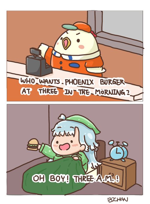 512 4756 Who wants phoenix burger at three in the morning?? #KFPicasso #Kfpmeme #ArtsOfAshes #AeruSeni 23/05/01 23:09
