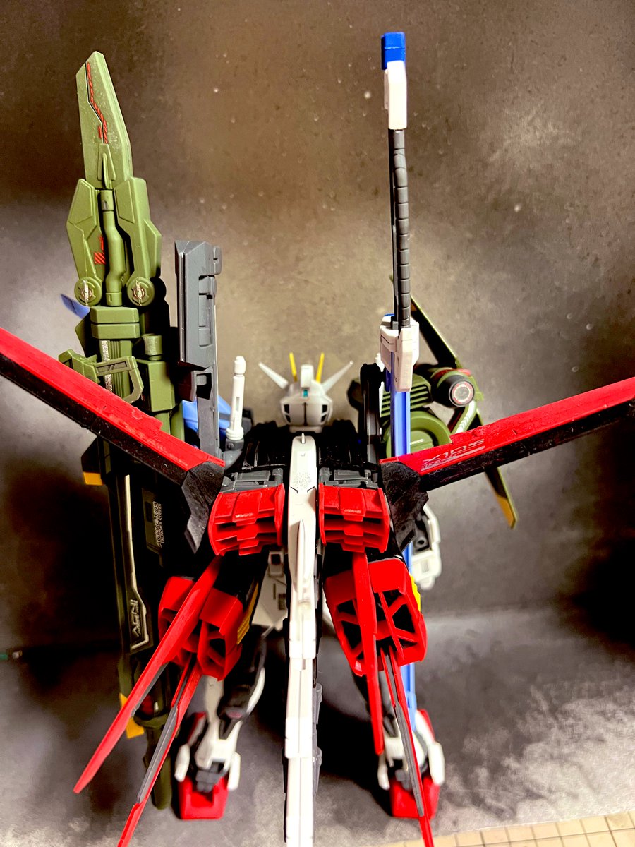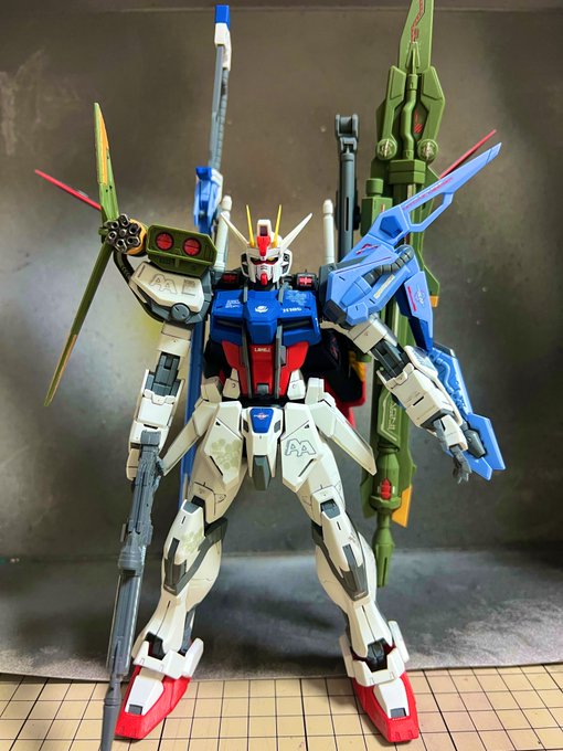 今度こそちゃんと完成しました。 墨入れ、部分塗装、艶消し簡単フィニッシュ! MGパーフェクトストライクガンダム 意外とちゃんと自立させられるw #ガンプラ好きな人たちと繋がりたい #ガンプラはどんな自由な発想で作ってもいいんだ #ガンプラの画像貼るとRTされると聞いて