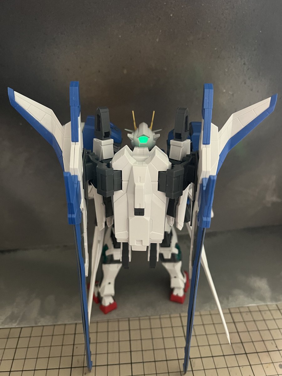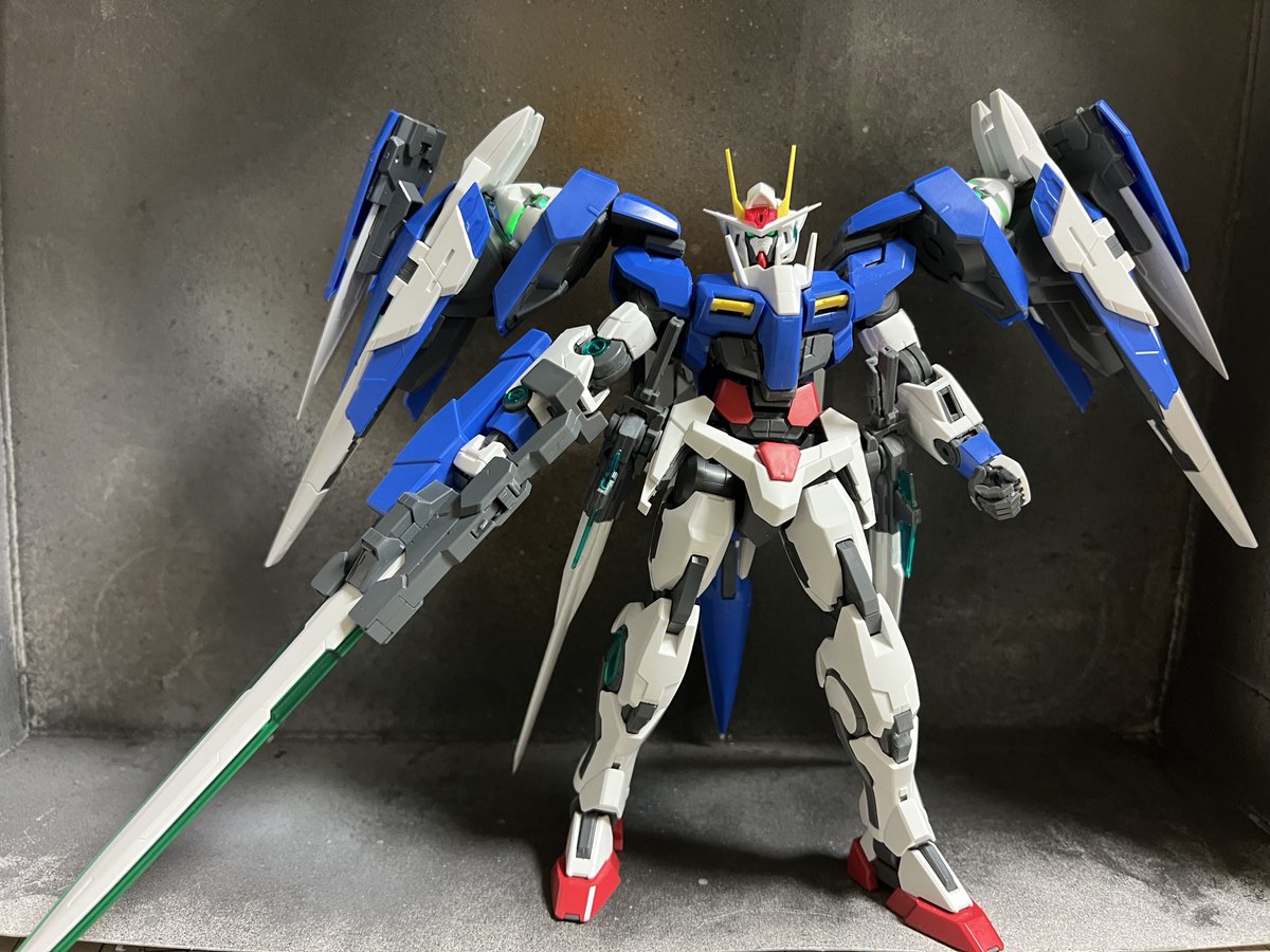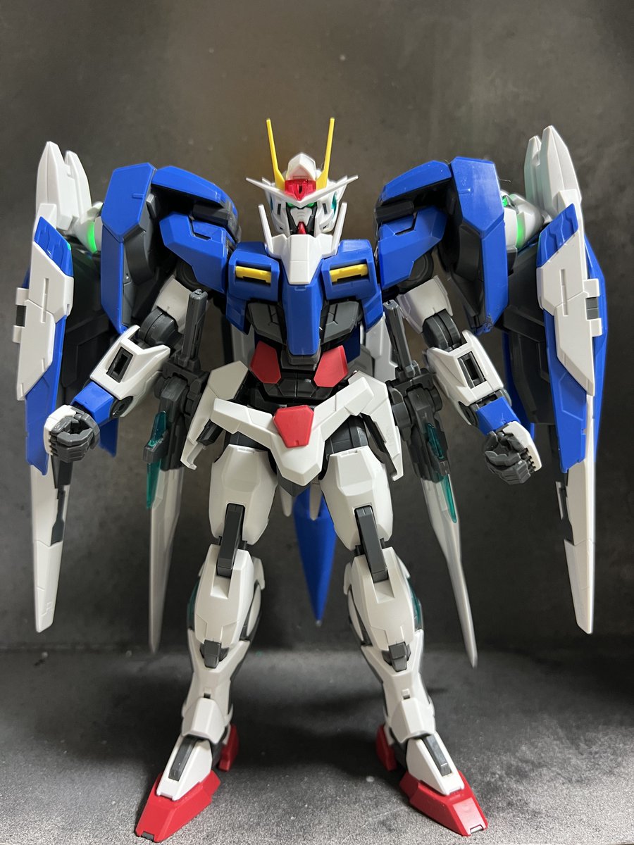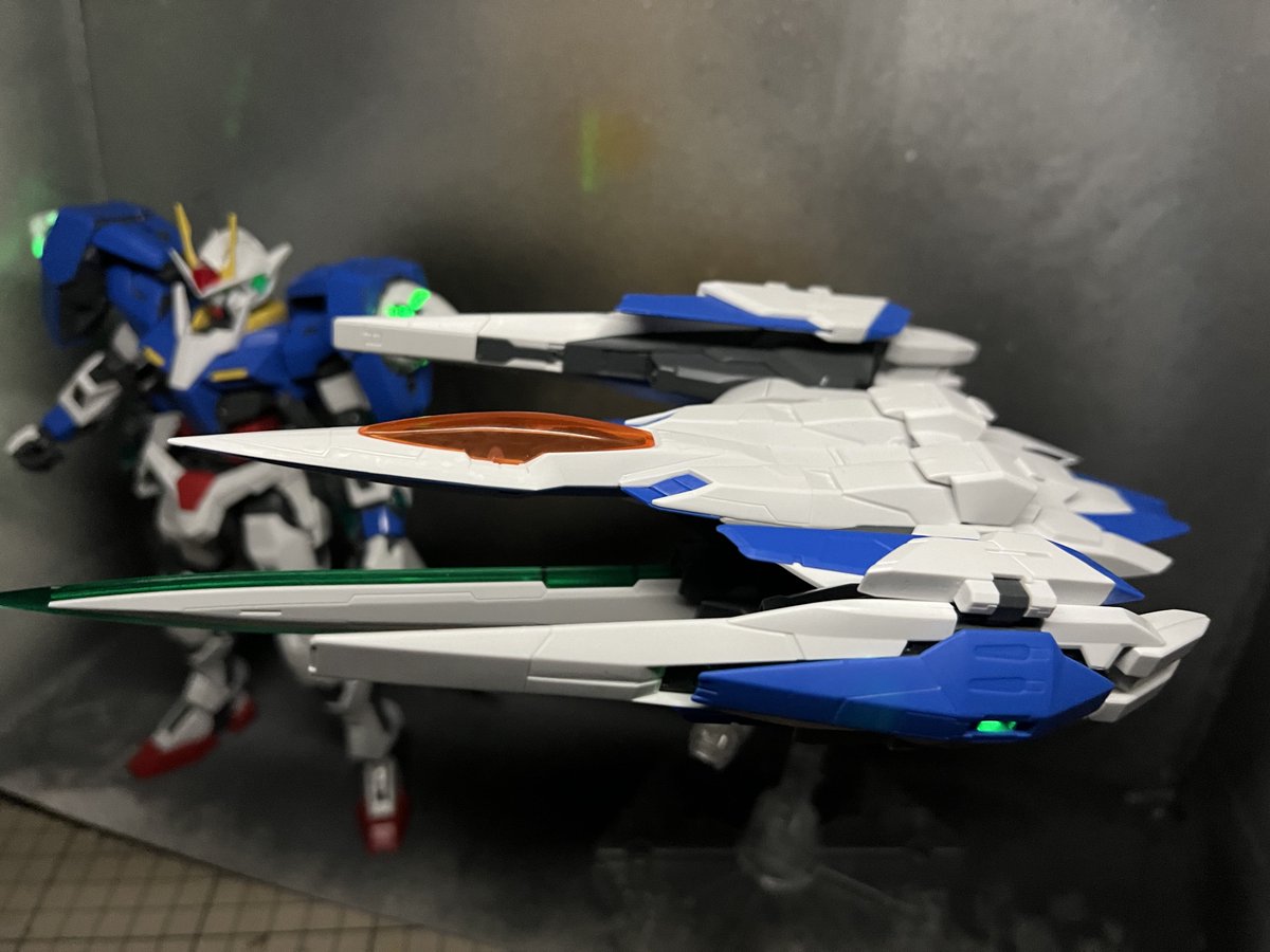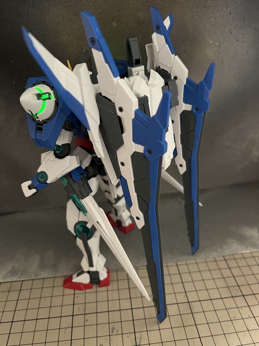 おはようございます! ダブルオーさんのバックパックまで完成しました。 急にマッシブで大きさが全然違うように感じるw LEDを付けてるのですが、発光が弱く感じる・・・ #OOガンダム #ガンプラ好きと繋がりたい #ガンプラの画像貼るとRTされると聞いて