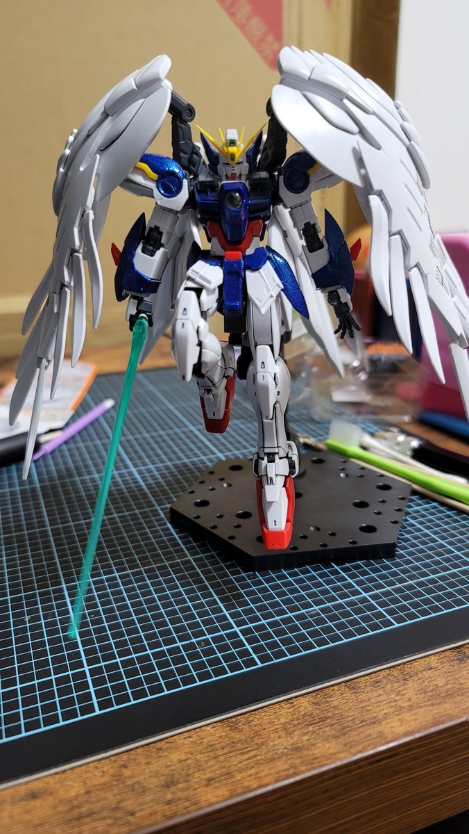 RG ウイングガンダムEW パチ組み完了 肩が固定されずポロポロ外れるのがすごく気になるけどかっこいいから良し! 薄刃片刃ニッパーで切ってもアップにするとゲート跡目立つなぁ…。 次はスミ入れしようかな! #ガンプラ #ガンプラ好きな人と繋がりたい #ガンプラの画像を貼るとRTされると聞いて