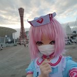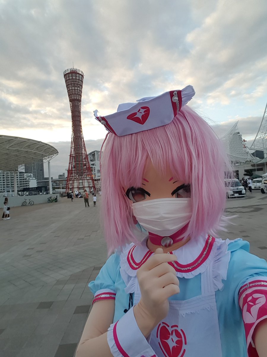 かみこす!で神戸の街を歩いてきた!よ! 通りすがりの人たちもレイヤーさんもカメラマンさんもみんな優しかった! あと途中から衣装の羽とエプロンが壊れて大変だった! ぼくは白衣の天使になるなってこと!?めっちゃやむ! #かみこす