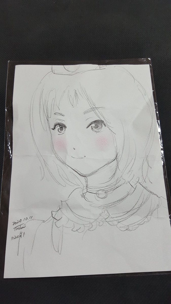 0 1 今日もイラスト描いてもらった!タッチもサインも一緒なので有馬のときと同じ@Toshi_Okumu サマだと思う! ありがとうございました! こういういただくときに限ってカバンちっちゃくて折り目つく…。やむ…。 #かみこす 20/10/11 23:04