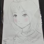 今日もイラスト描いてもらった!タッチもサインも一緒なので有馬のときと同じ@Toshi_Okumu サマだと思う! ありがとうございました! こういういただくときに限ってカバンちっちゃくて折り目つく…。やむ…。 #かみこす