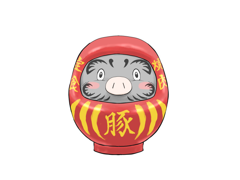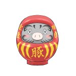 ナマズオ達磨の絵柄が素敵だったので、ポーキーの達磨も描いてみました。#FF14 \\ 食べる子は育つブヒ! //