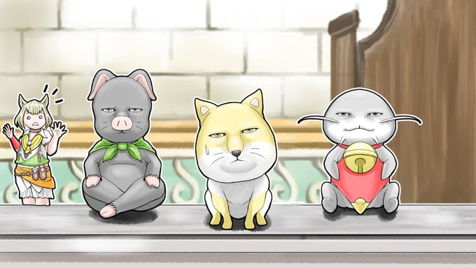 相変わらず流行には敏感なポーキーとナマズオ。 #FF14 #FFXIV