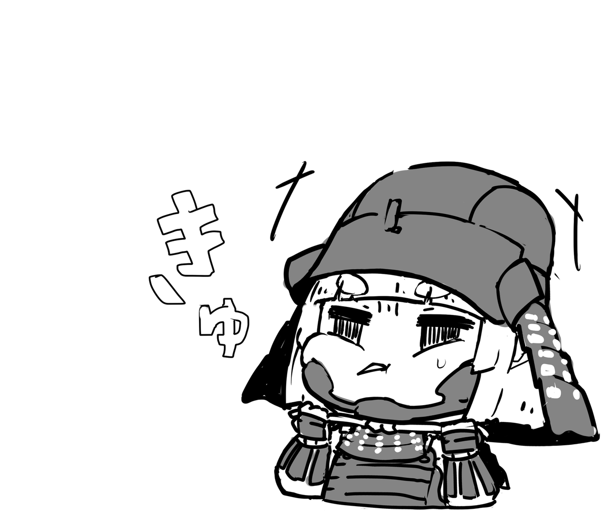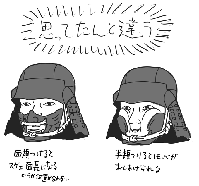 らくがき、左右非対称の立物の兜とかかっこよくない? こんなのあったかどうかはしらんけど