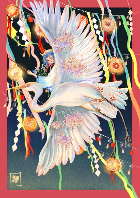 New drop on @withFND 🍀 'The crane in the lantern' this the 4th piece from Dragon's wish series. 🍀🎋🐉 Feel free to check out this artwork here foundation.app/@bomfha/~/99144 (read more in thread 👇) #NFTCommunity #nftcollector #NFTdrop #illustration #NFTarts #AnimeNFT